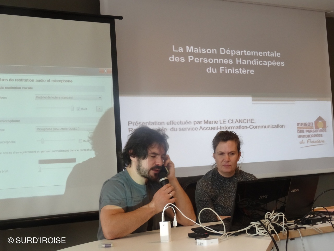 Pour faciliter la compréhension et les échanges nous avions également prévu la retranscription simultanée assurée par le "Messageur" qui délivre déjà cette prestation lors de nos assemblées générales.